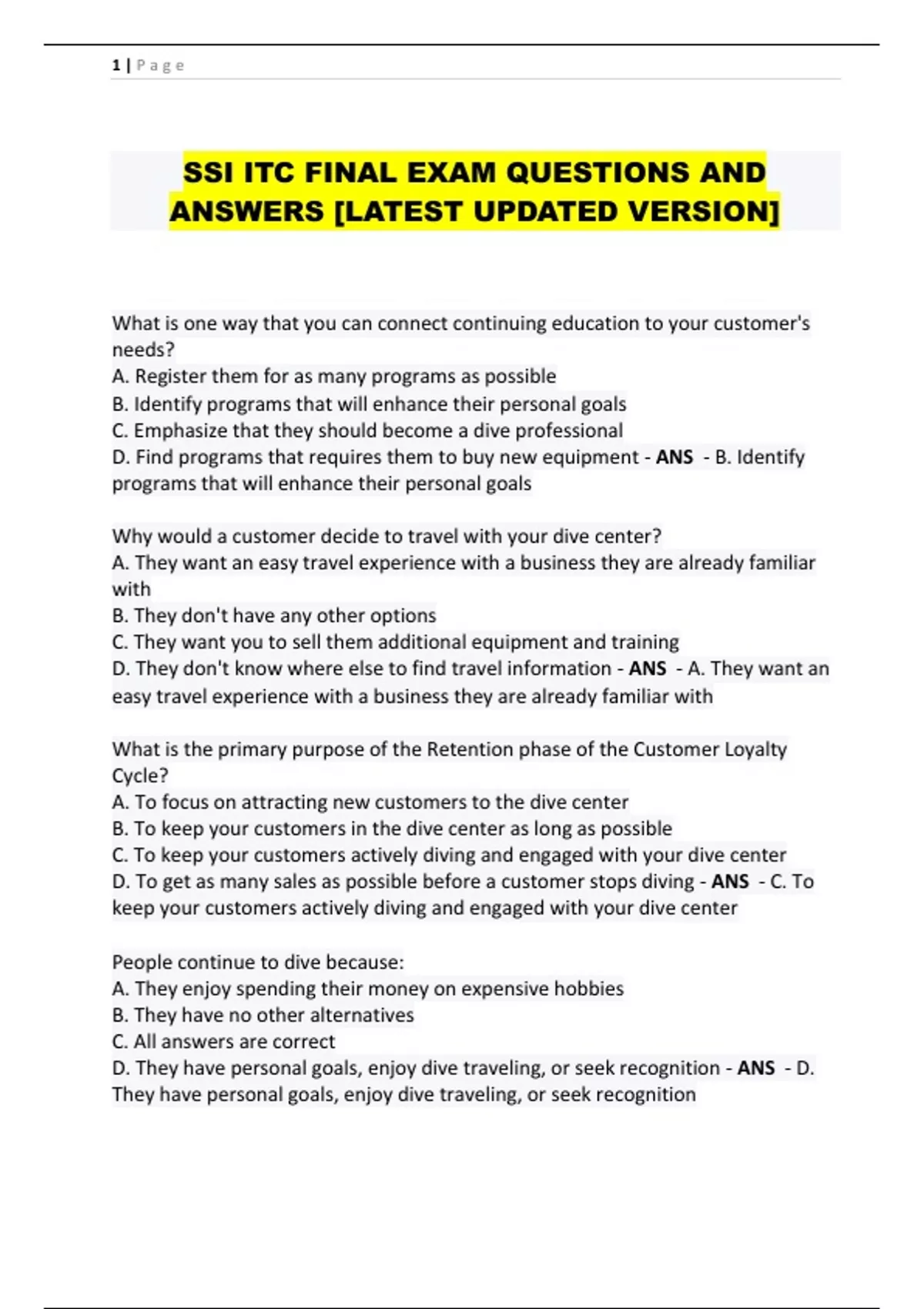 SSI ITC FINAL EXAM QUESTIONS AND ANSWERS [LATEST UPDATED VERSION]