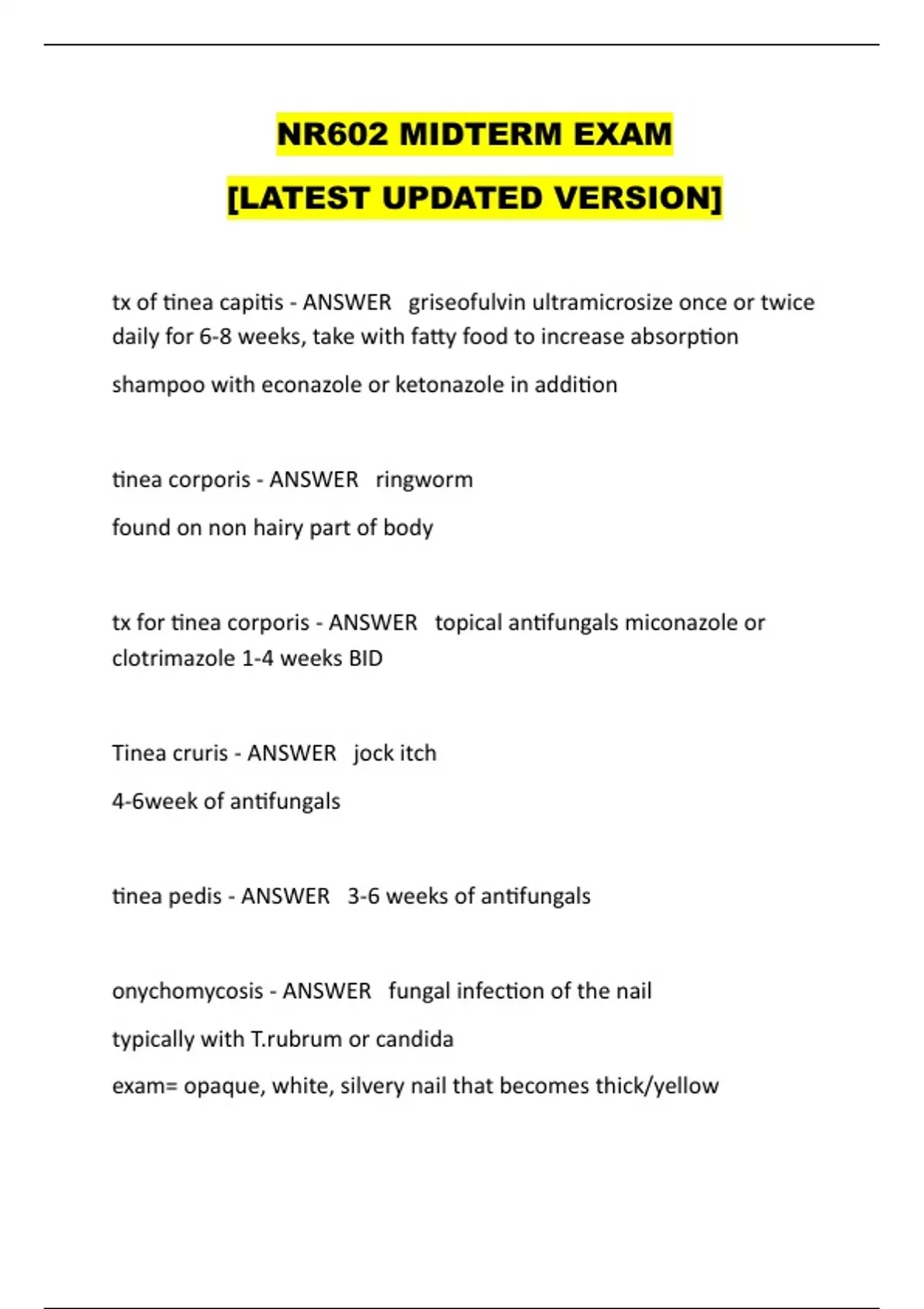 tx of tinea capitis - ANSWER griseofulvin ultramicrosize once or twice