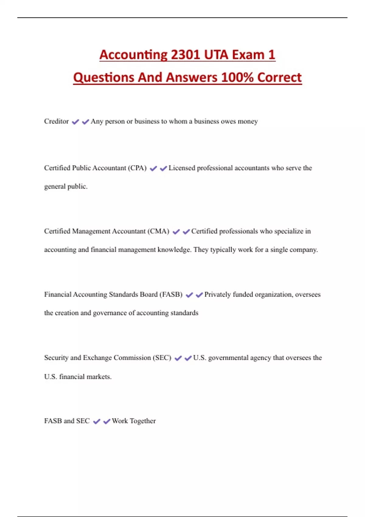 , Accounting 2301 UTA Exam 1