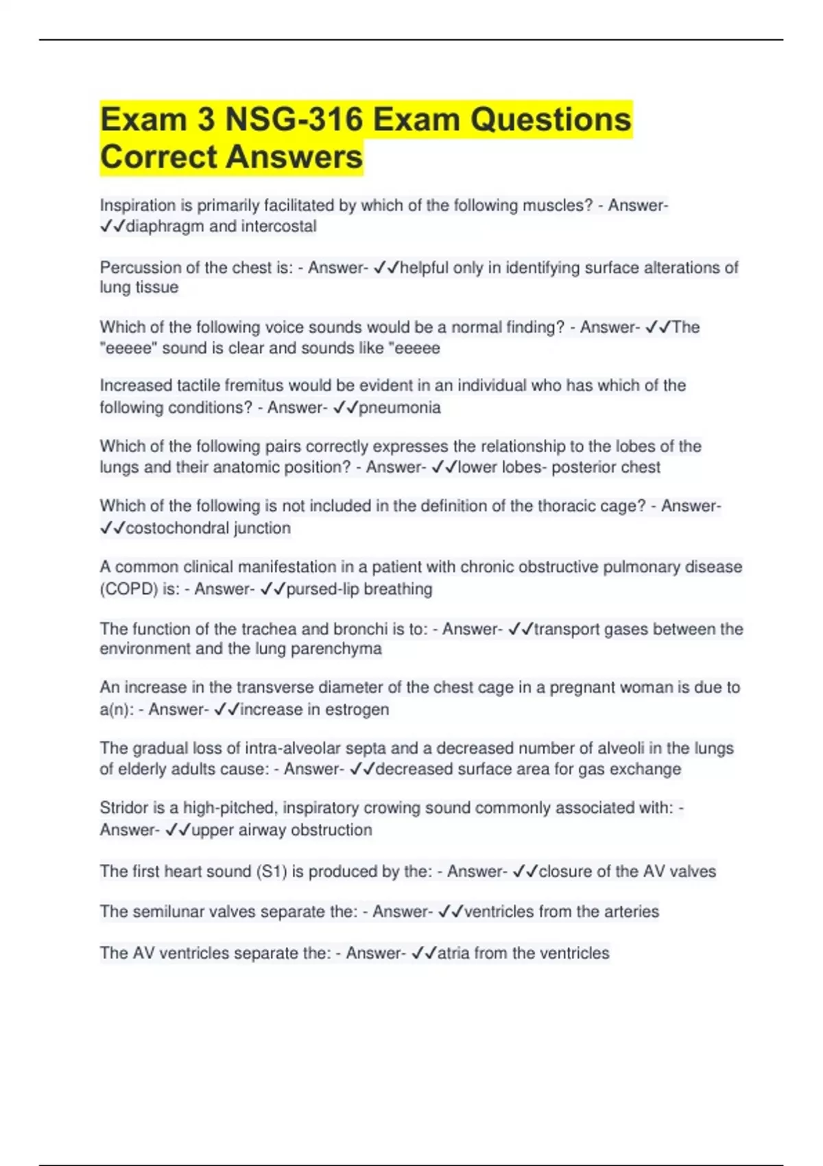 following conditions? - Answer- ✔✔pneumonia