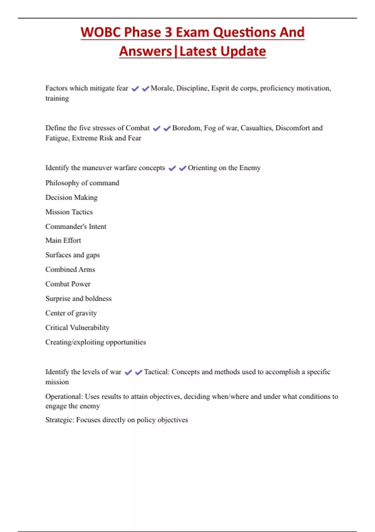 Identify the levels of war Tactical: Concepts and methods used to accomplish a specific