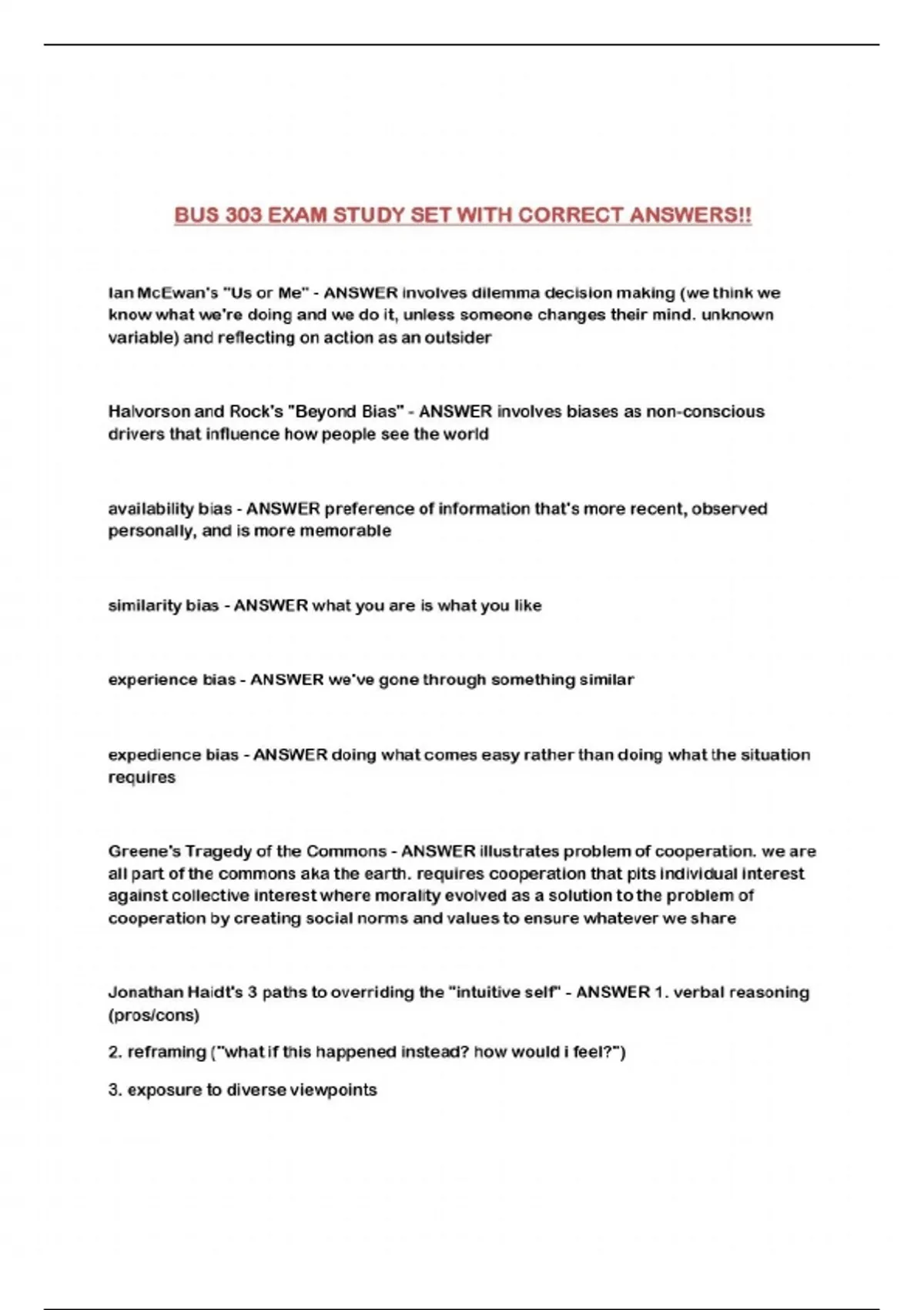 bus 303 exam study set with correct answers