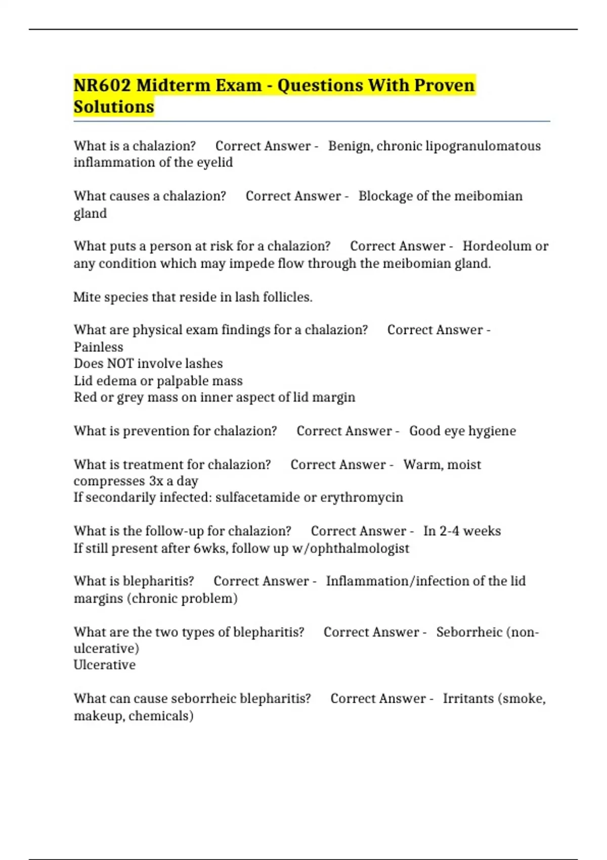 , What are s/s of seborrheic blepharitis? Correct Answer - Chronic