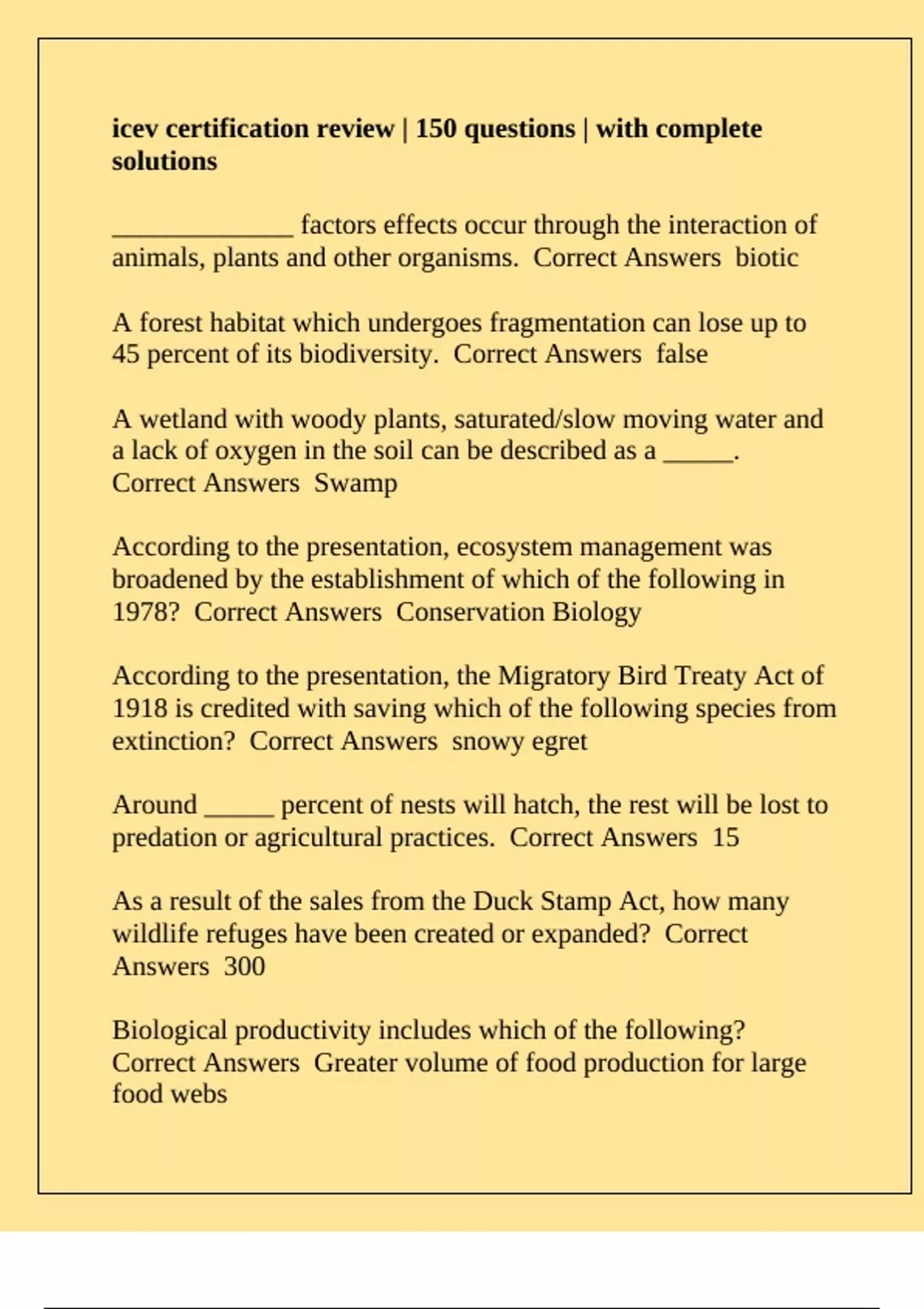 predation or agricultural practices. Correct Answers 15