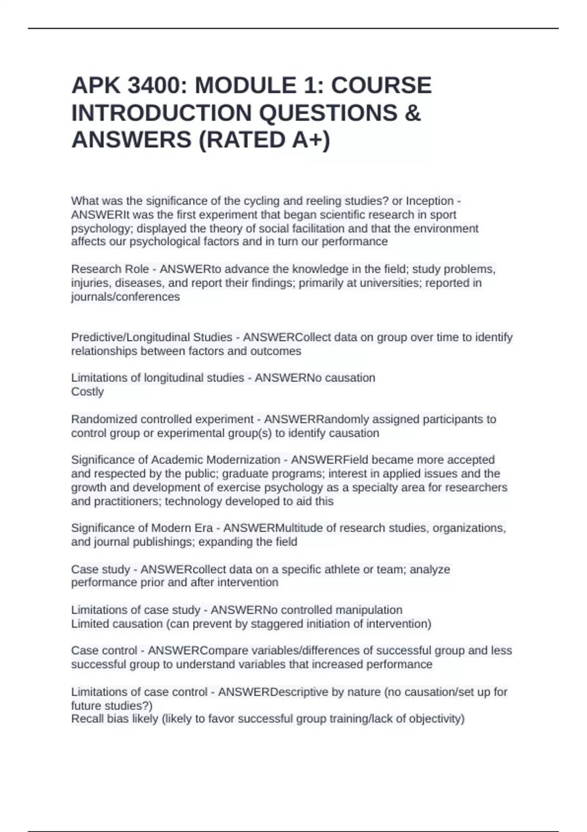 APK 3400: MODULE 1: COURSE INTRODUCTION QUESTIONS & ANSWERS (RATED A+)