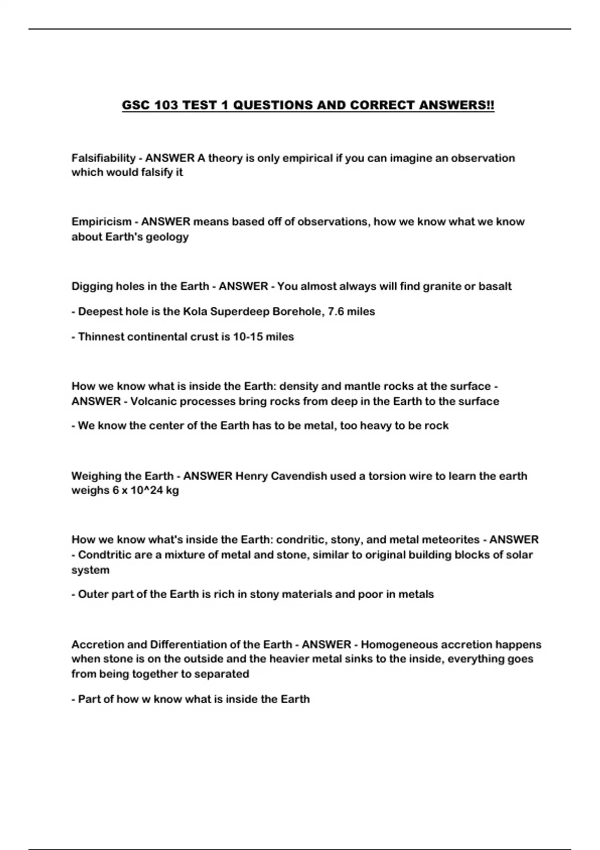 GSC 103 TEST 1 QUESTIONS AND CORRECT ANSWERS!!...