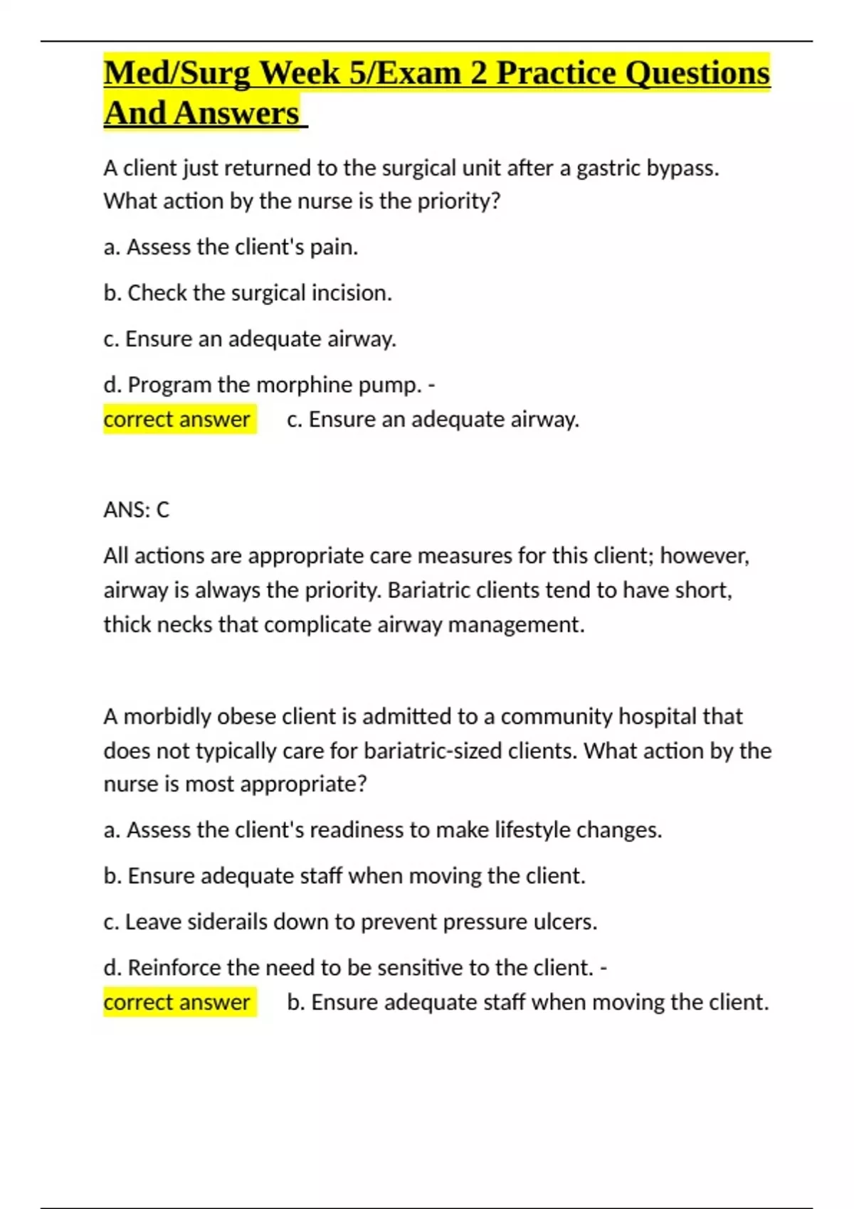 airway is always the priority. Bariatric clients tend to have short,