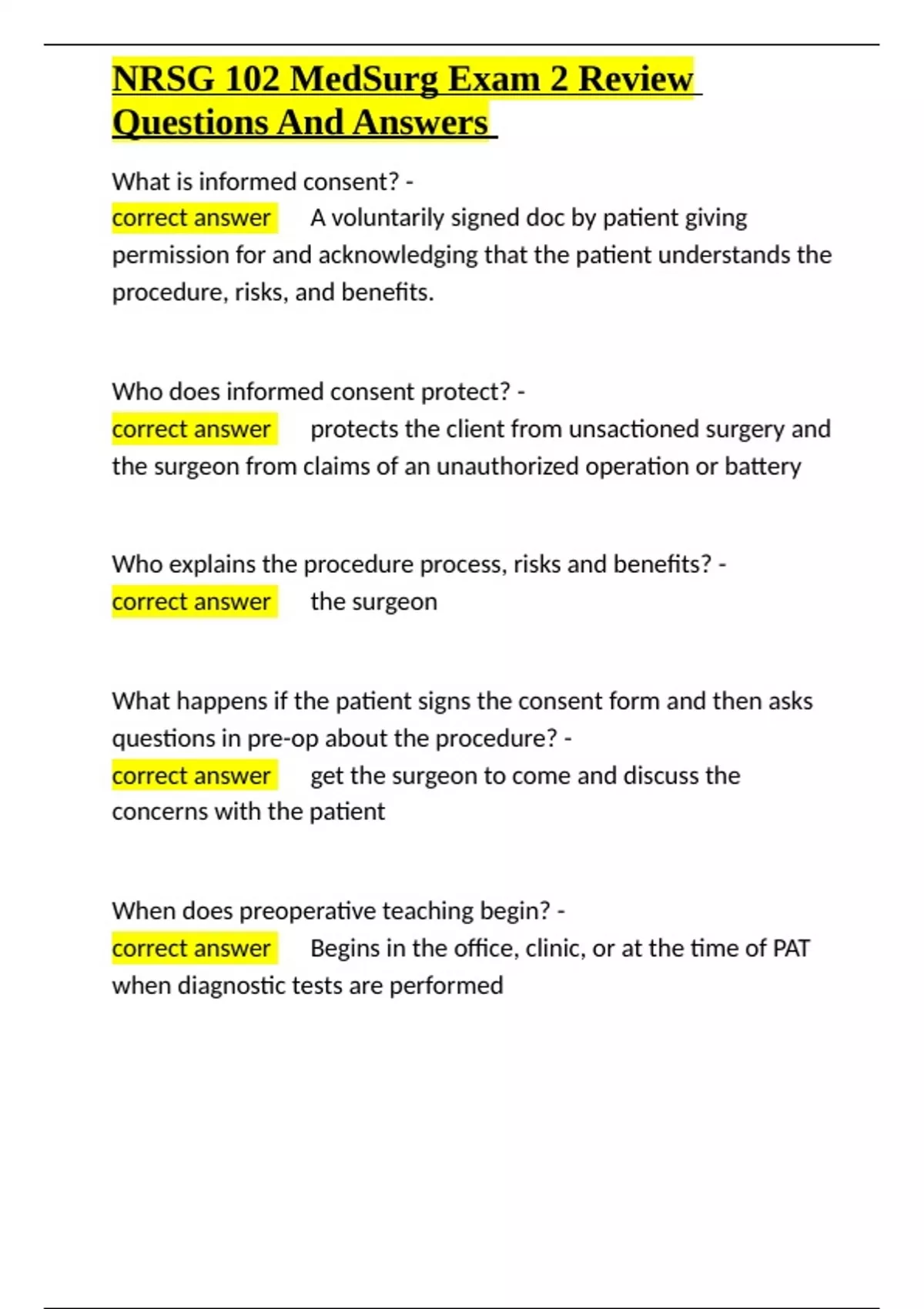 correct answer ✅A voluntarily signed doc by patient giving