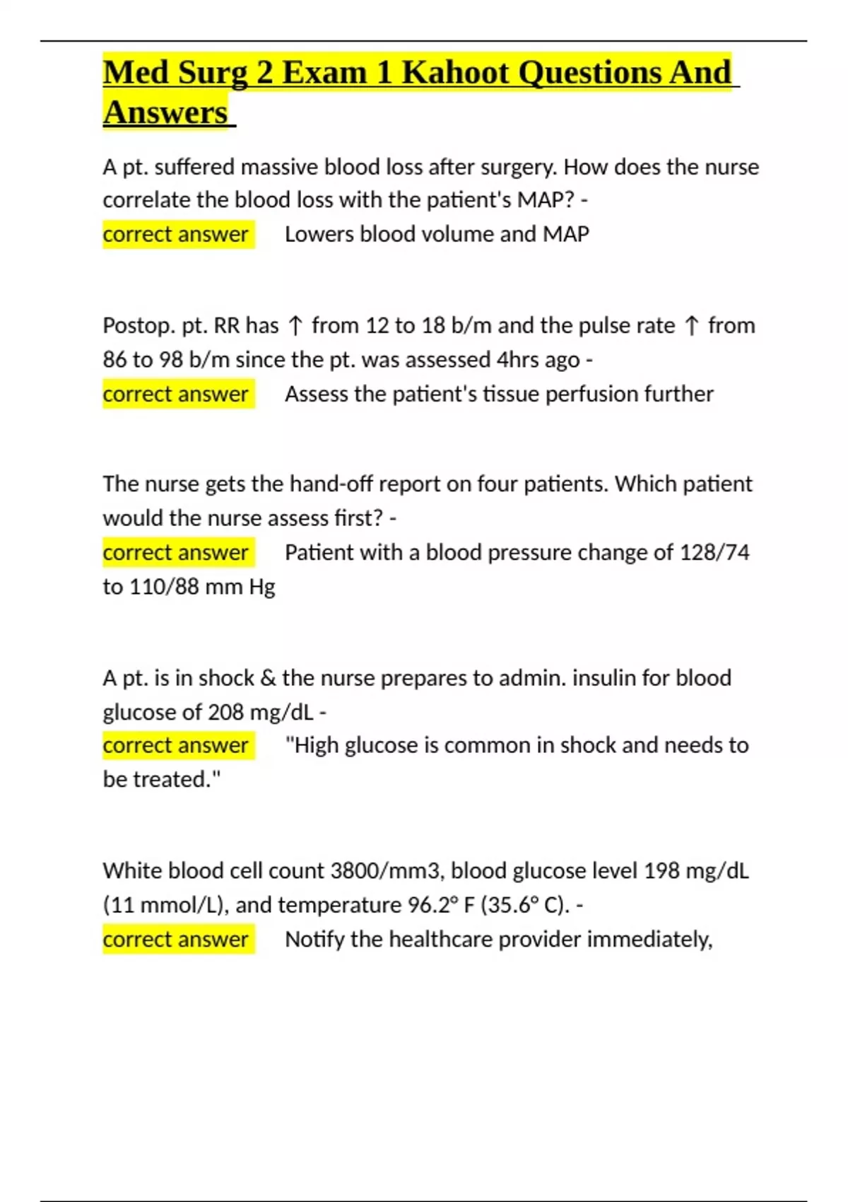 , Med Surg 2 Exam 1 Kahoot Questions And