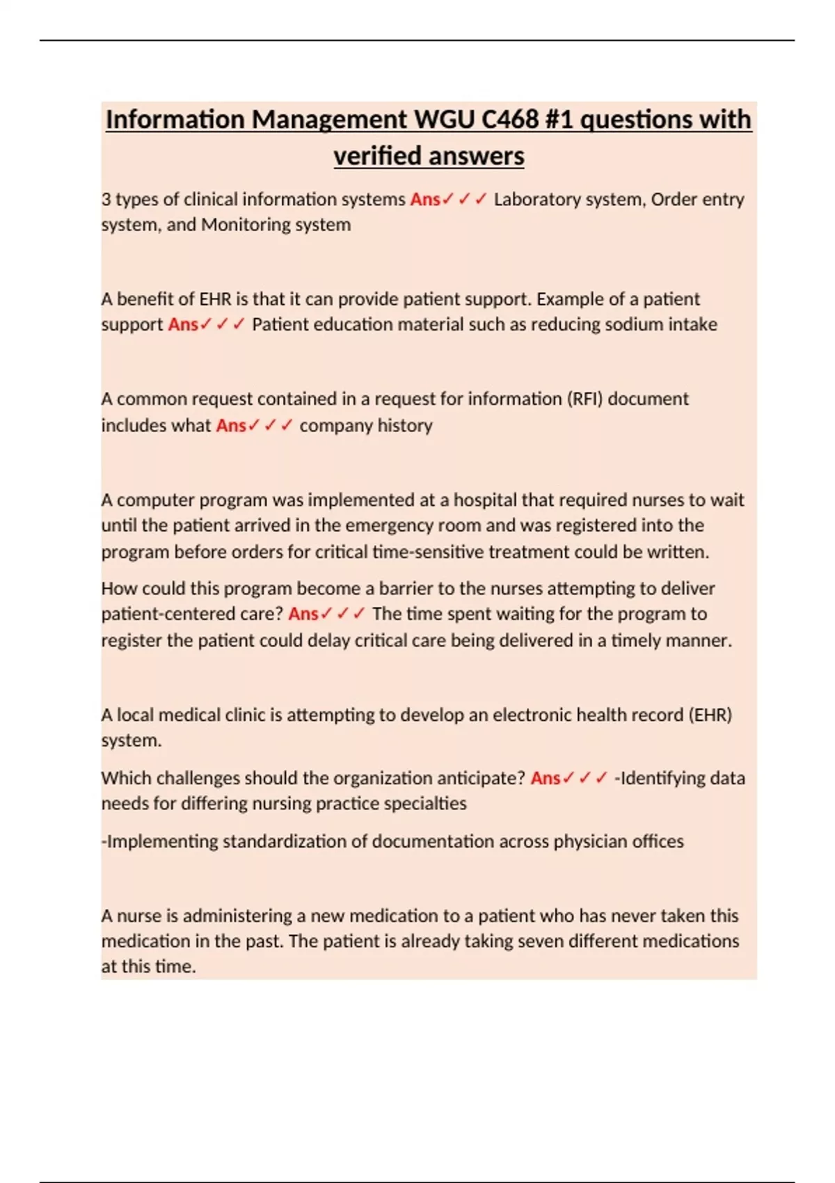 medication? Ans✓✓✓ Review the drug-to-drug-allergy check in electronic health