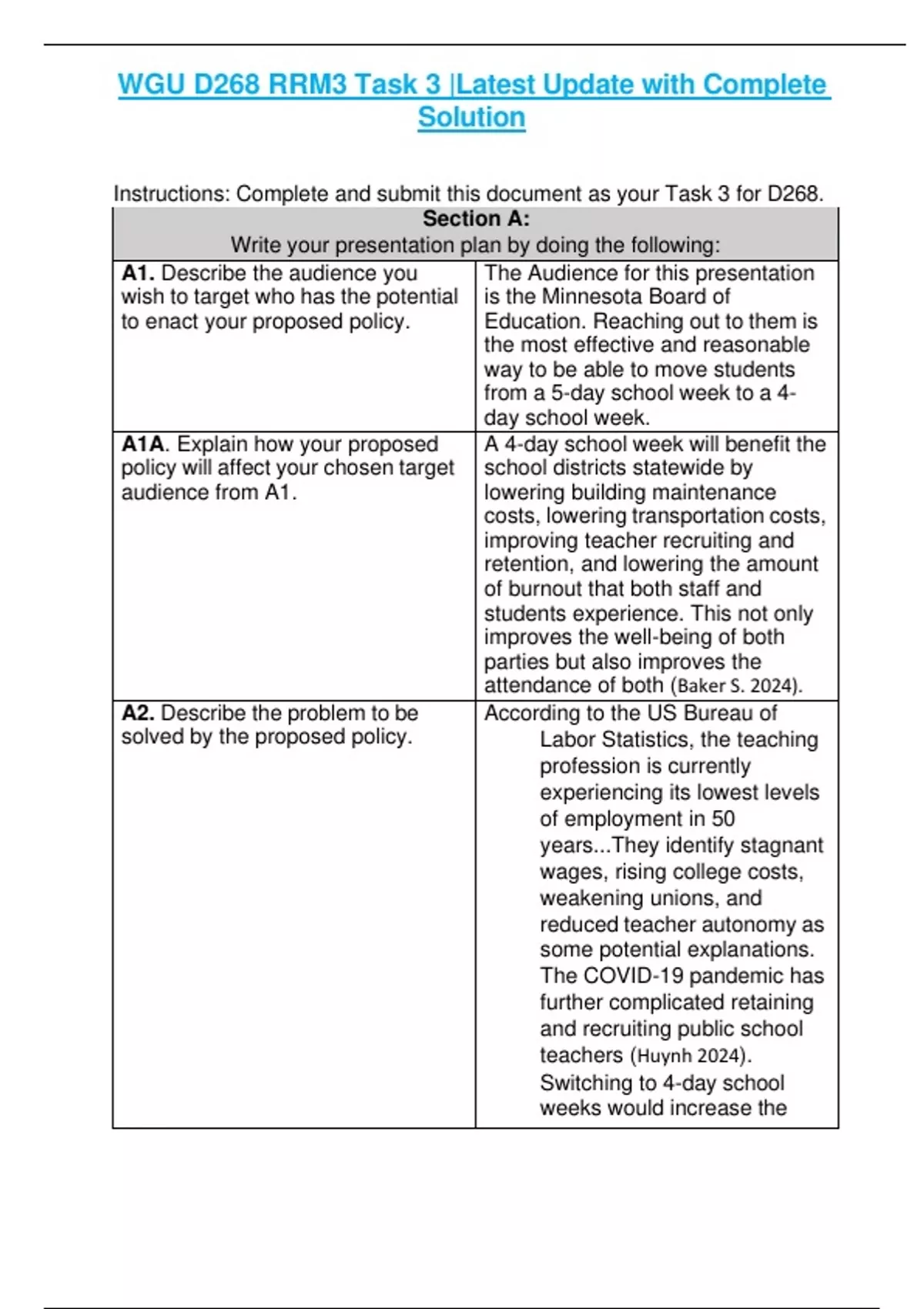WGU D268 RRM3 Task 3 |Latest Update with Complete Solution