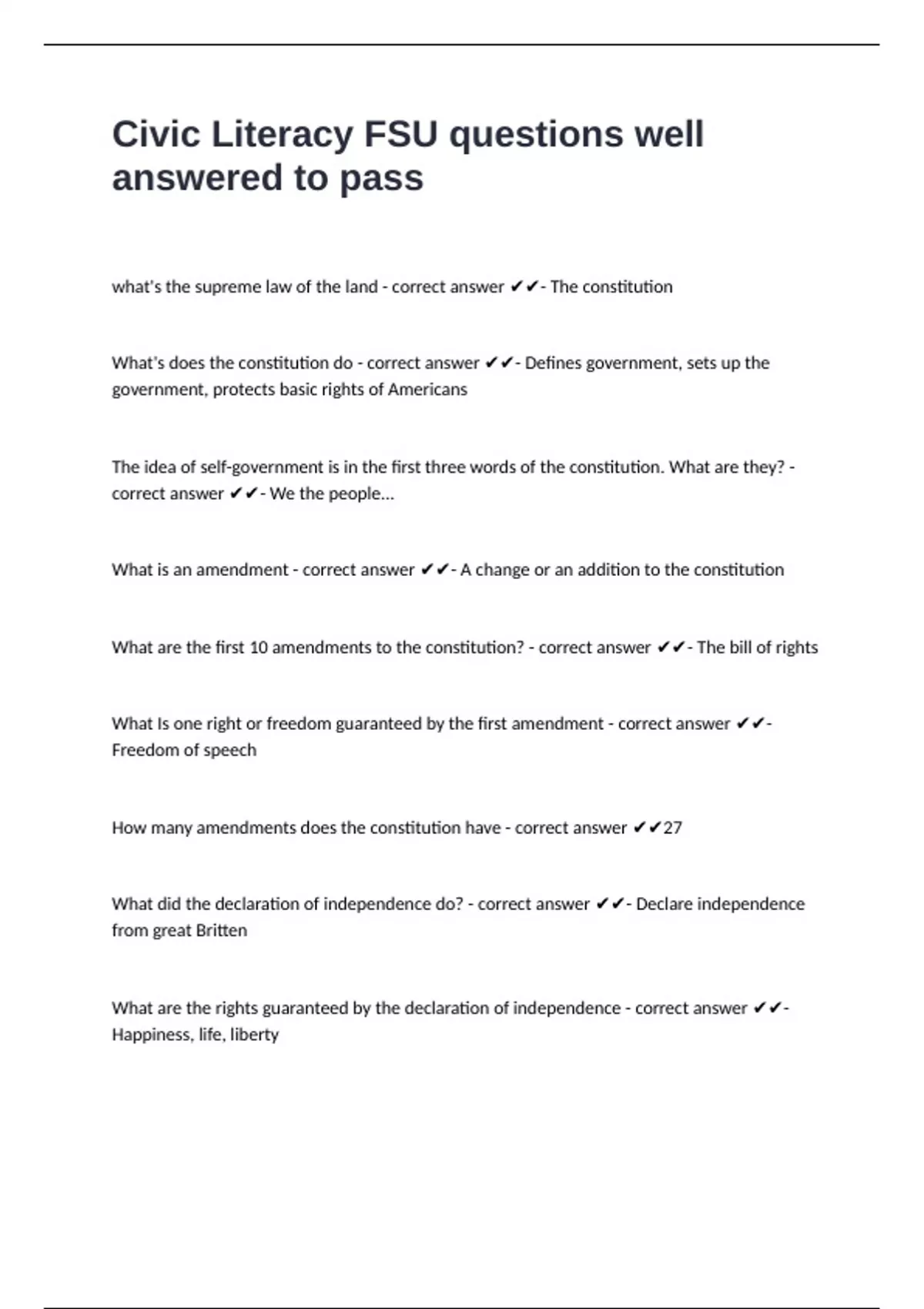 How many amendments does the constitution have - correct answer ✔✔27