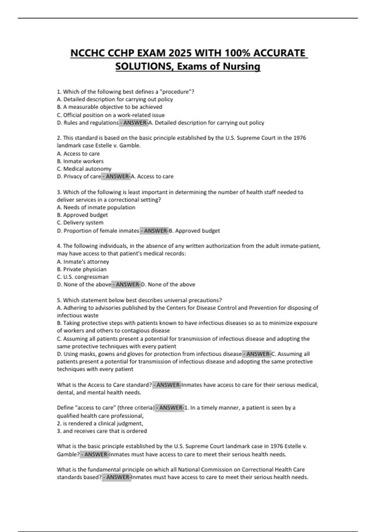 NCCHC CCHP EXAM 2025 WITH 100% ACCURATE