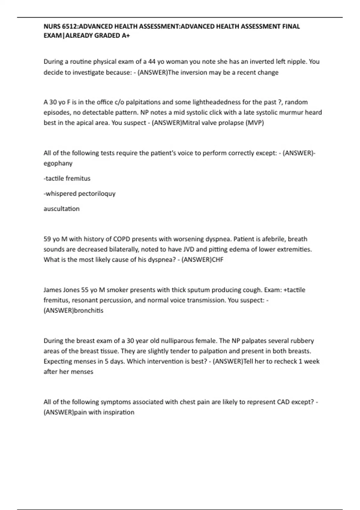 NURS 6512:ADVANCED HEALTH ASSESSMENT:ADVANCED HEALTH ASSESSMENT FINAL