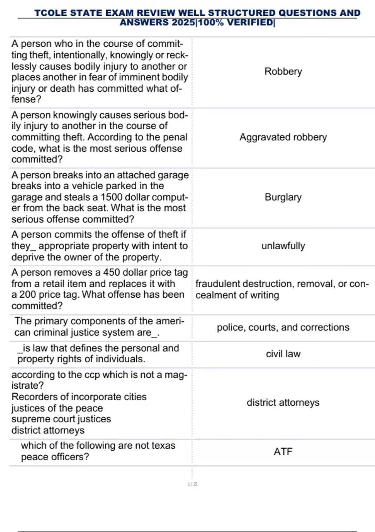 , TCOLE STATE EXAM REVIEW WELL STRUCTURED QUESTIONS AND