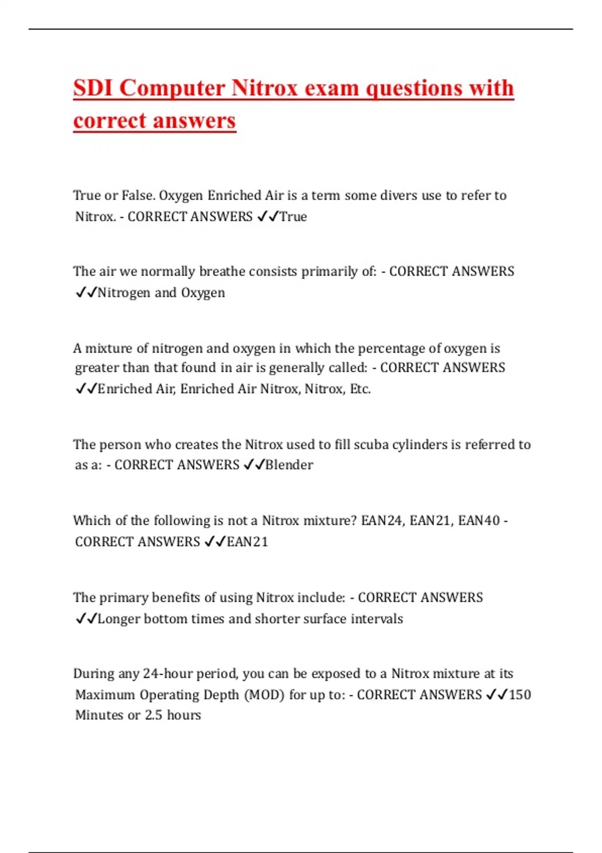 The primary benefits of using Nitrox include: - CORRECT ANSWERS