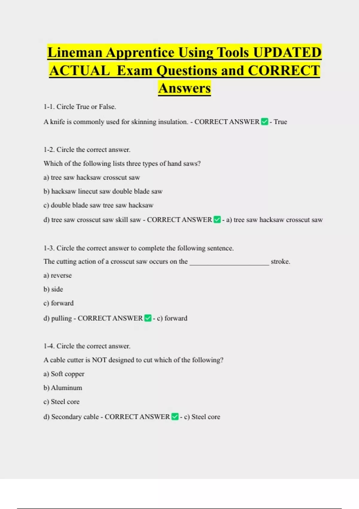 d) tree saw crosscut saw skill saw - CORRECT ANSWER - a) tree saw hacksaw crosscut saw