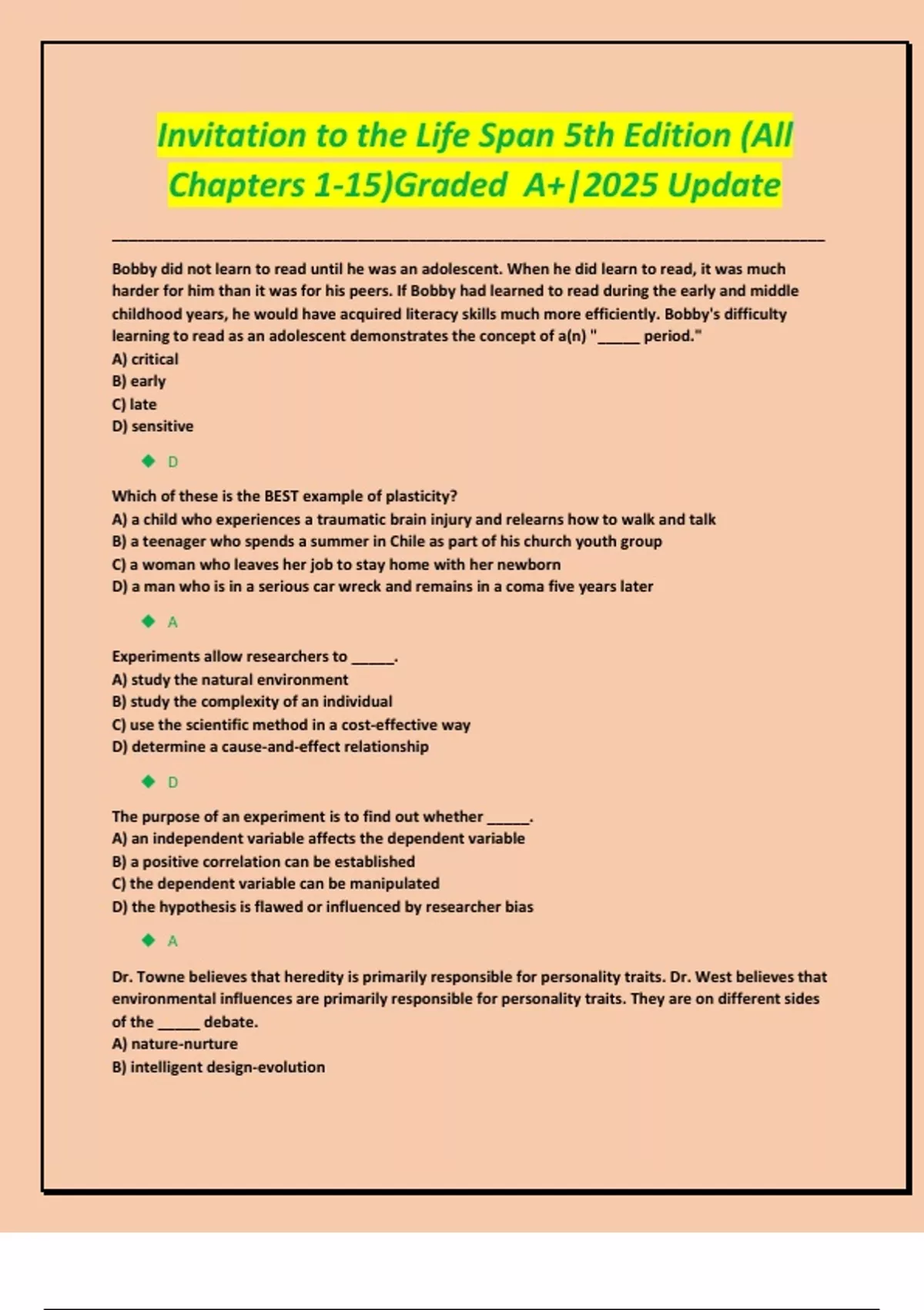 Invitation to the Life Span 5th Edition (All Chapters 1-15)Graded A+|2025 Update