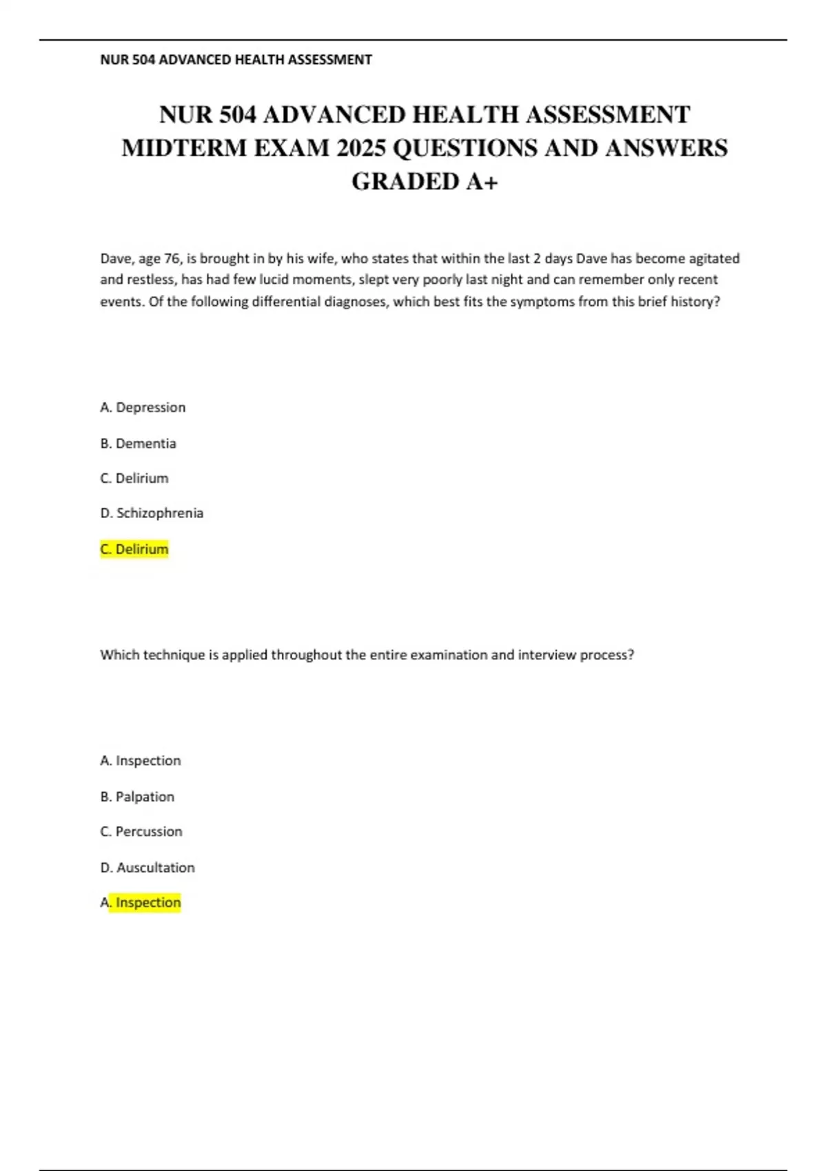 NUR 504 ADVANCED HEALTH ASSESSMENT MIDTERM EXAM 2025 QUESTIONS AND ANSWERS GRADED A+