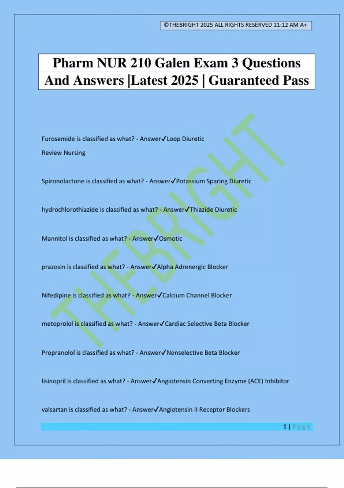 Furosemide is classified as what? - Answer✔Loop Diuretic