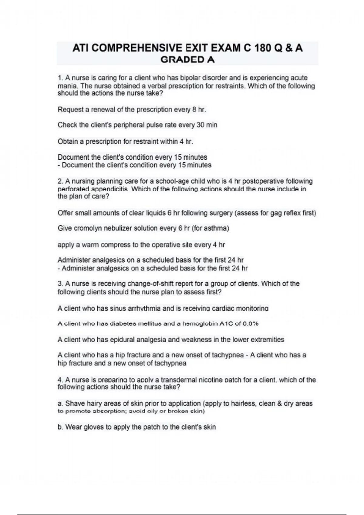 ATI COMPREHENSIVE EXIT EXAM C 180 Q & A GRADED A