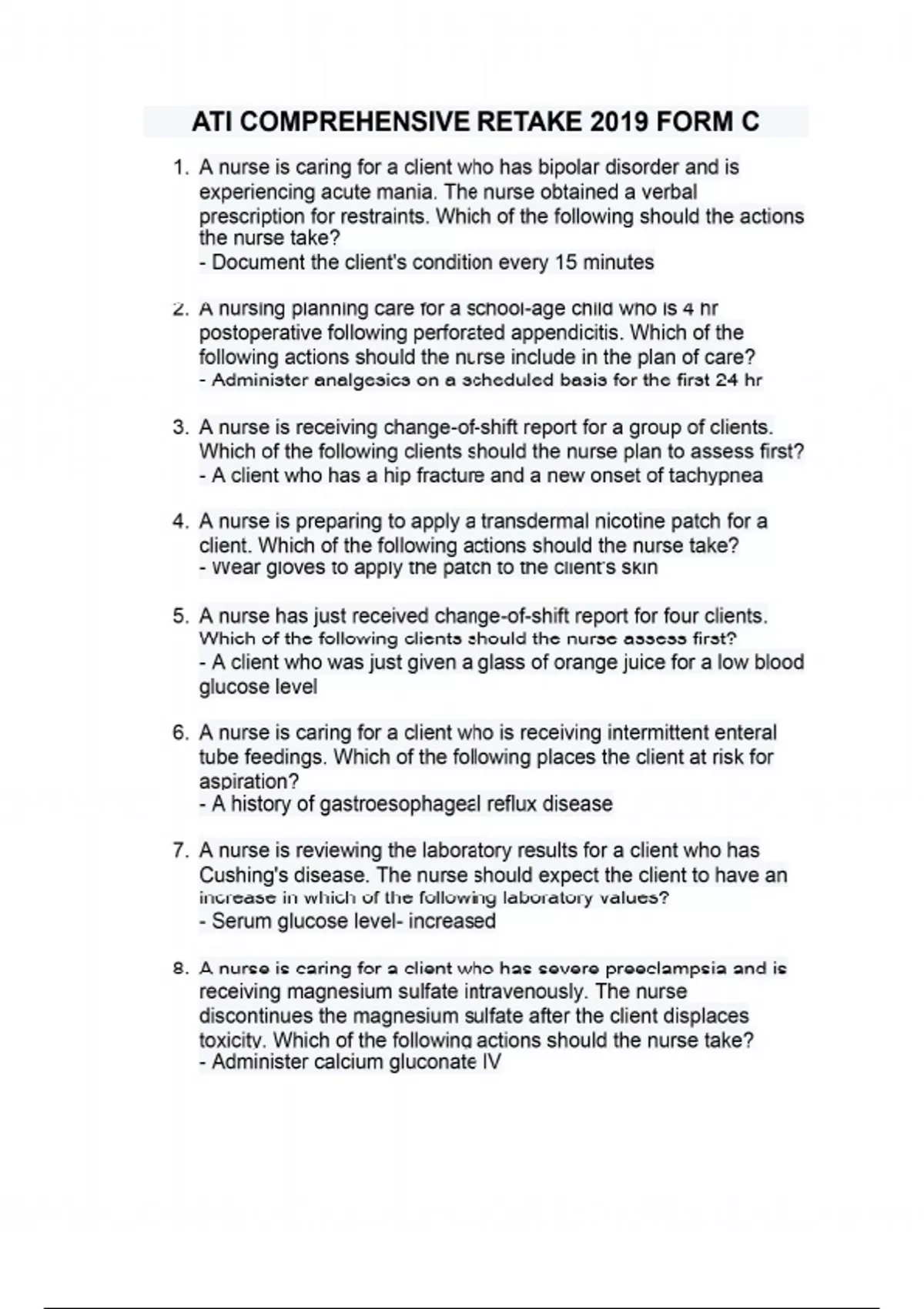 ATI COMPREHENSIVE RETAKE 2019 FORM C