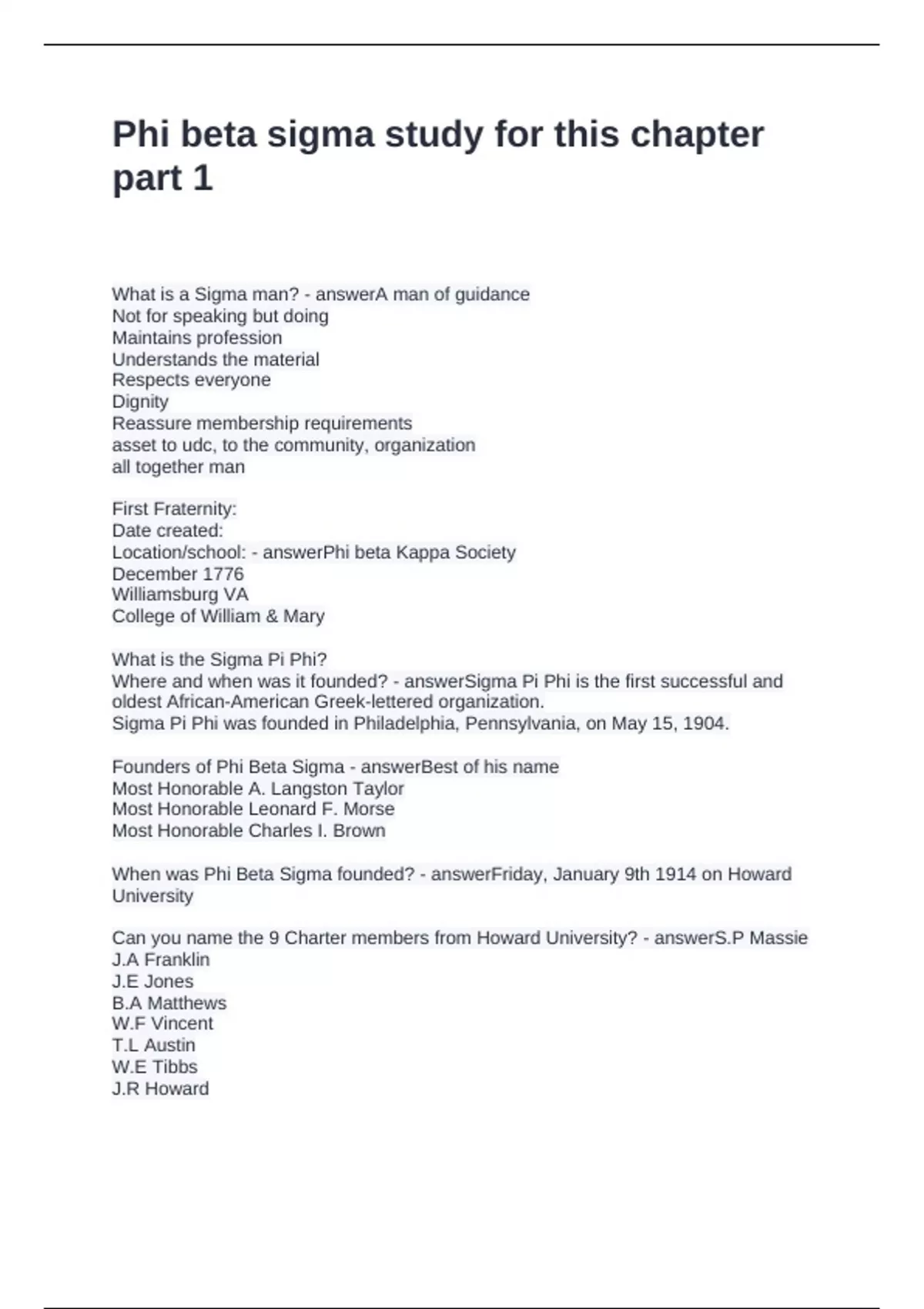 Phi beta sigma study for this chapter