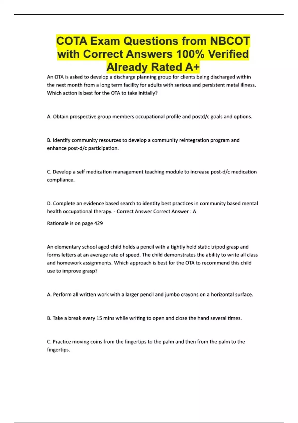 COTA Exam Questions from NBCOT with Correct Answers 100% Verified Already Rated A+