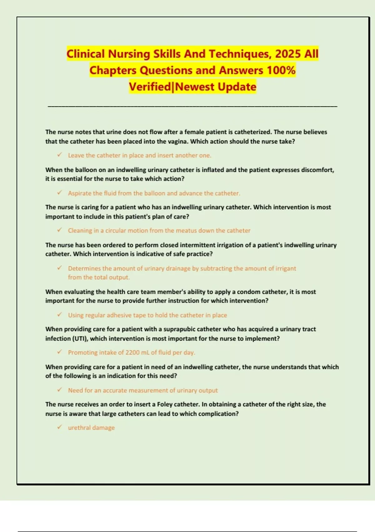 Clinical Nursing Skills And Techniques, 2025 All