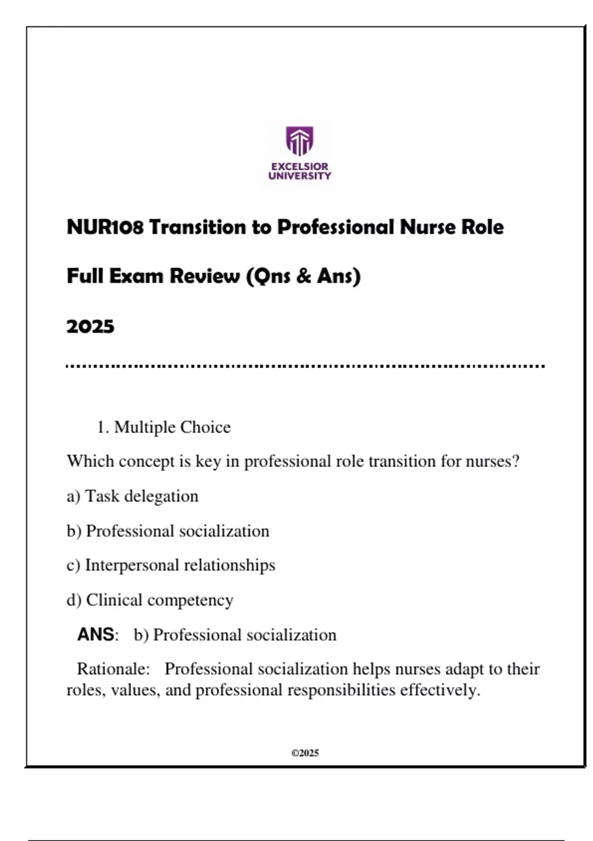 NUR108 Transition to Professional Nursing Role (EU) Full Exam Review 2025 (With Solns