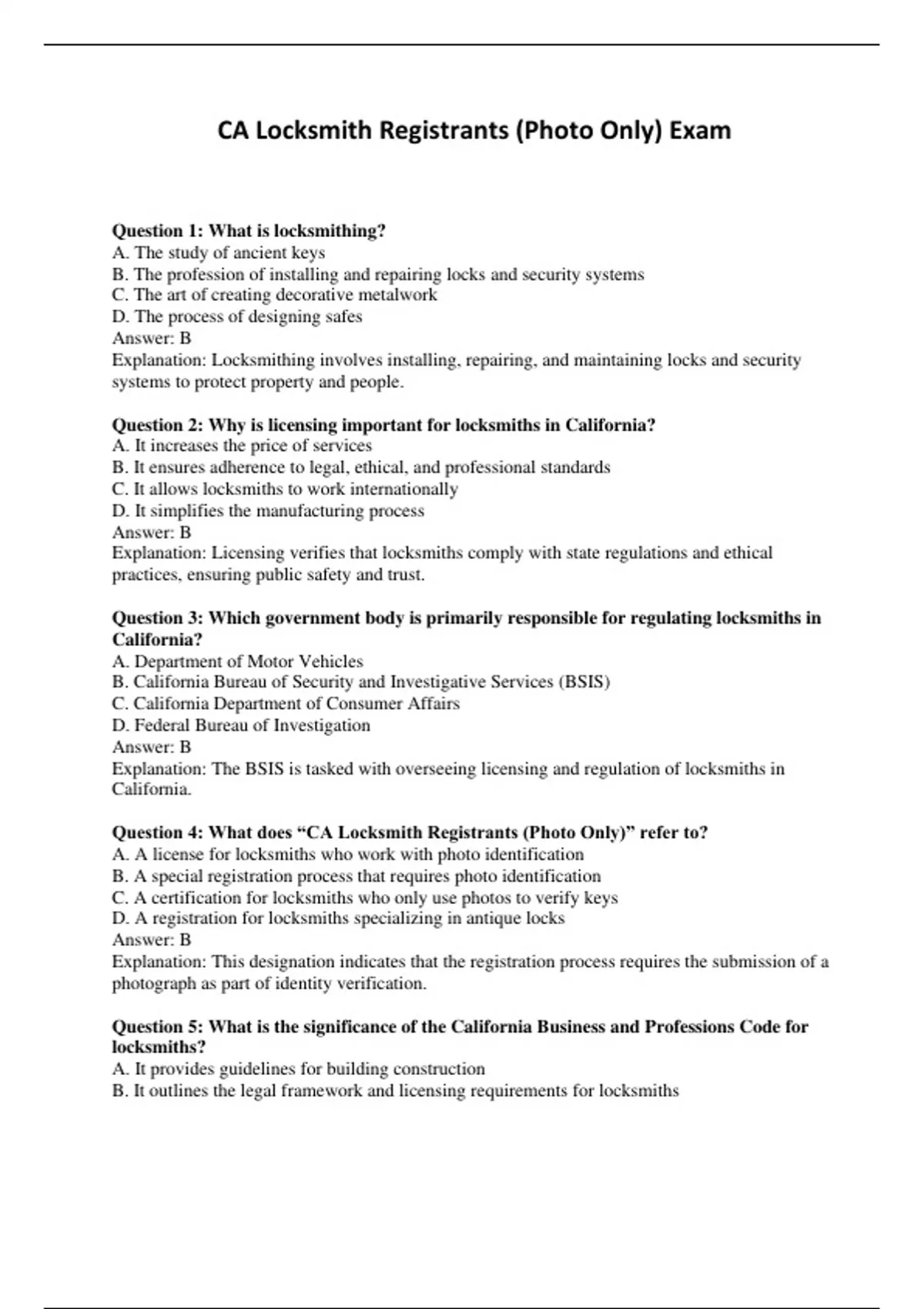 Explanation: A registered locksmith has fulfilled state-specific requirements, including photo