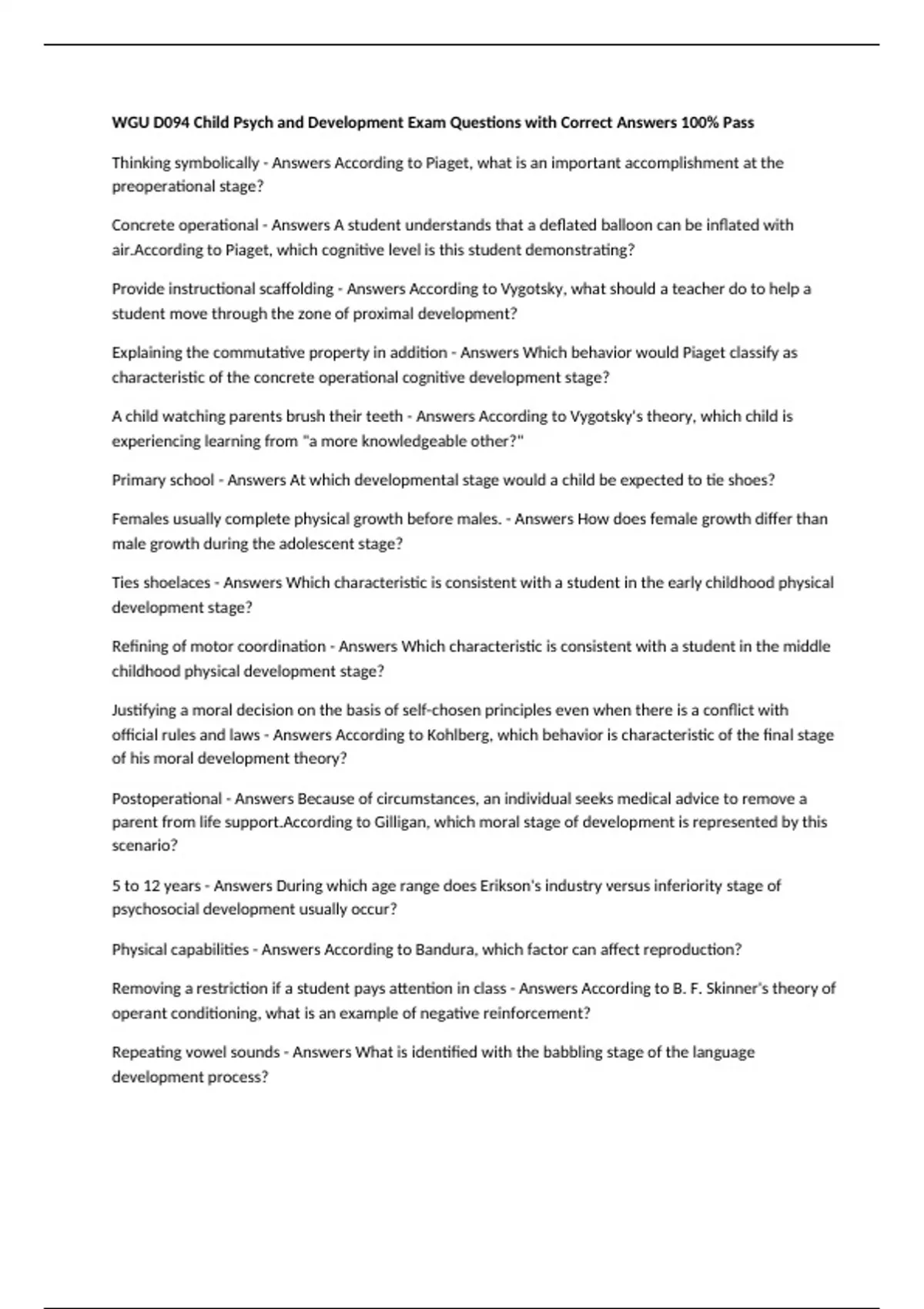 official rules and laws - Answers According to Kohlberg, which behavior is characteristic of the final stage