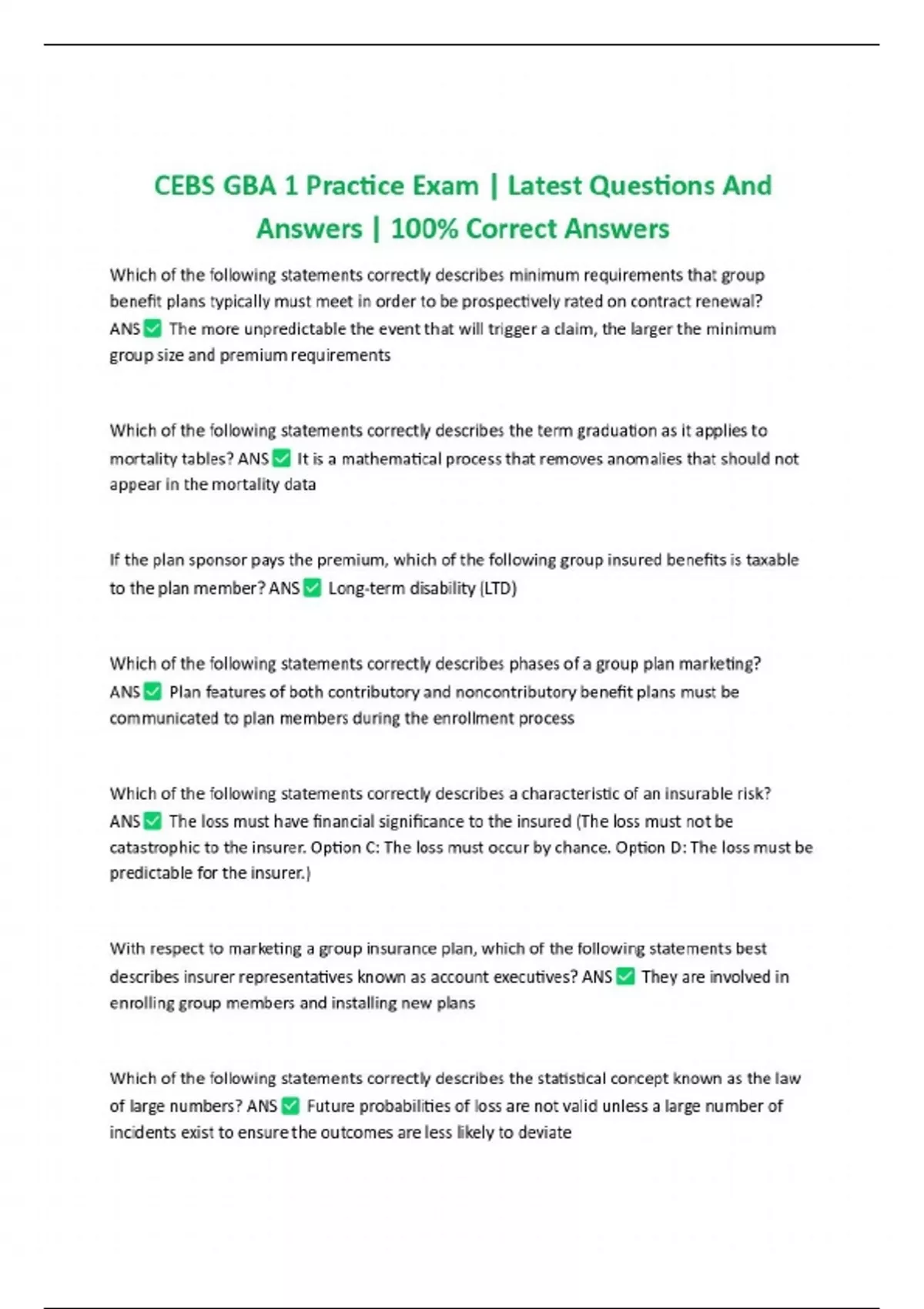 CEBS GBA 1 Practice Exam | Latest Questions And Answers | 100% Correct Answers