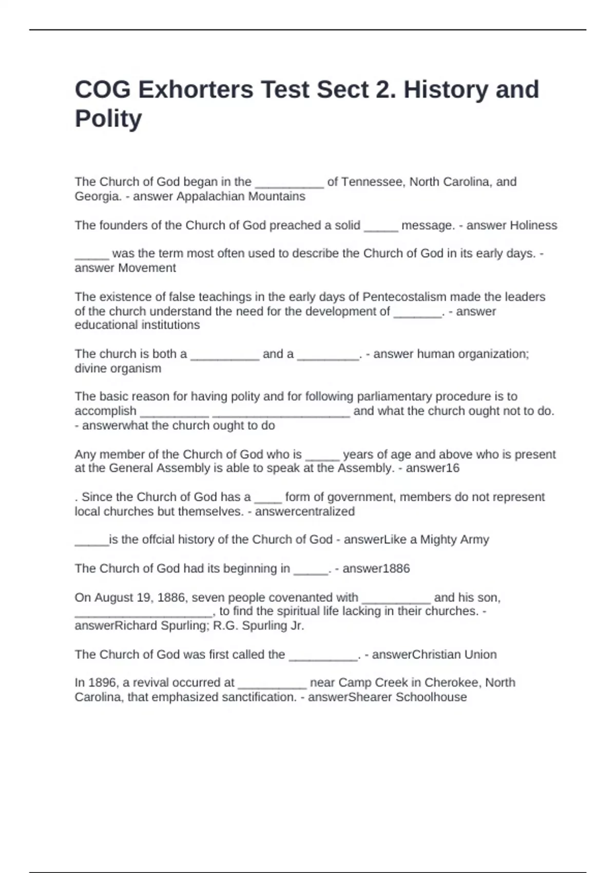 COG Exhorters Test Sect 2. History and