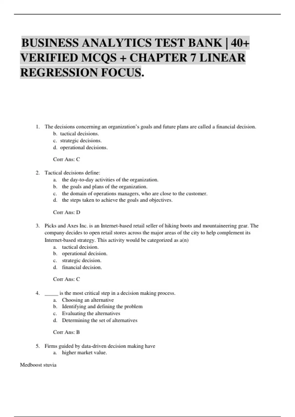 BUSINESS ANALYTICS TEST BANK | 40+