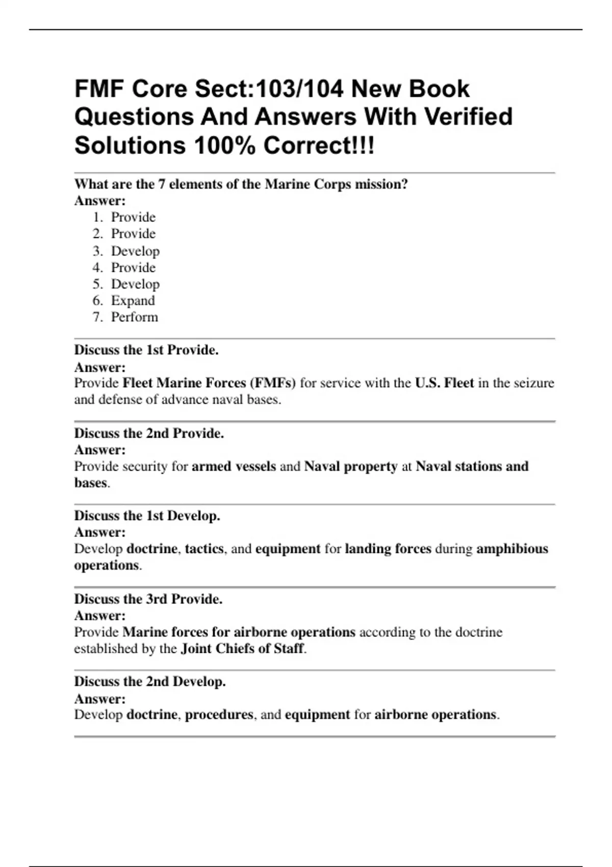 FMF Core Sect:103/104 New Book Questions And Answers With Verified Solutions 100% Correct!!!