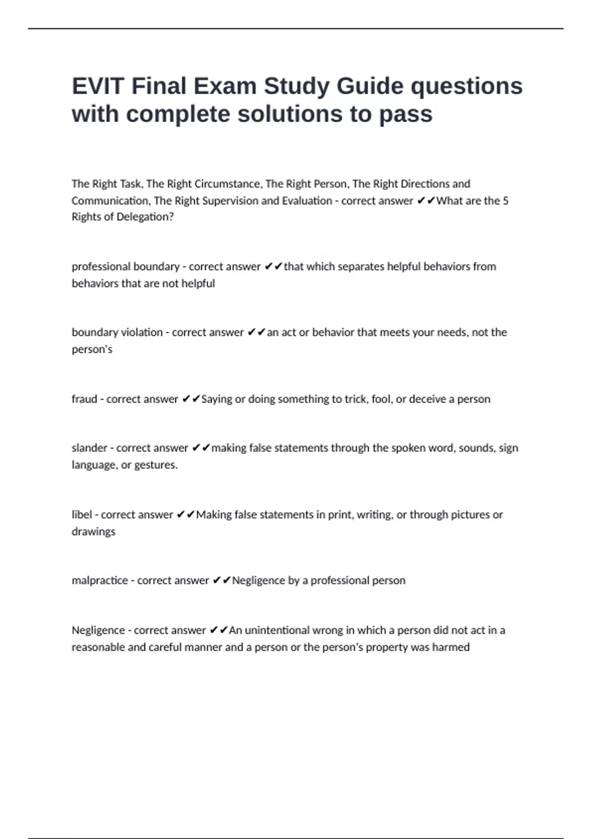 EVIT Final Exam Study Guide questions with complete solutions to pass