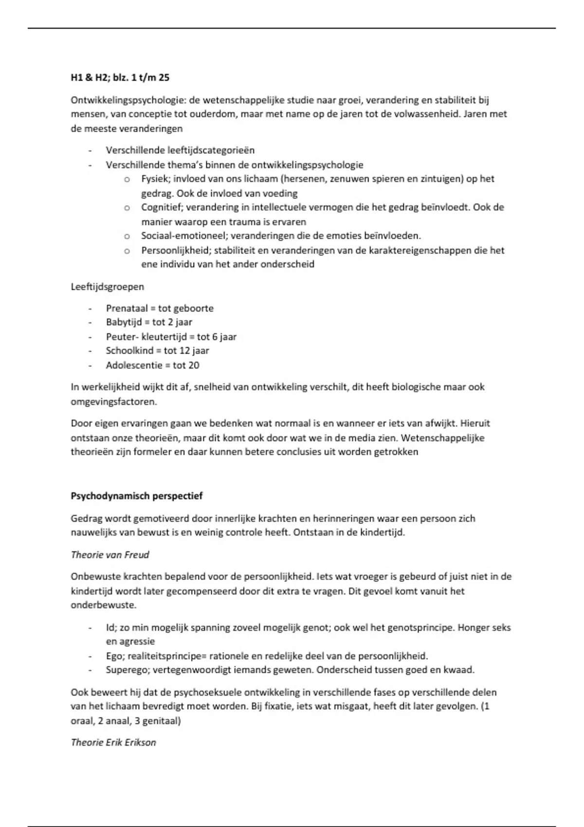 Freud denkt dat ontwikkeling compleet is na adolescentiefase, Erikson denkt dat dit de ontwikkeling