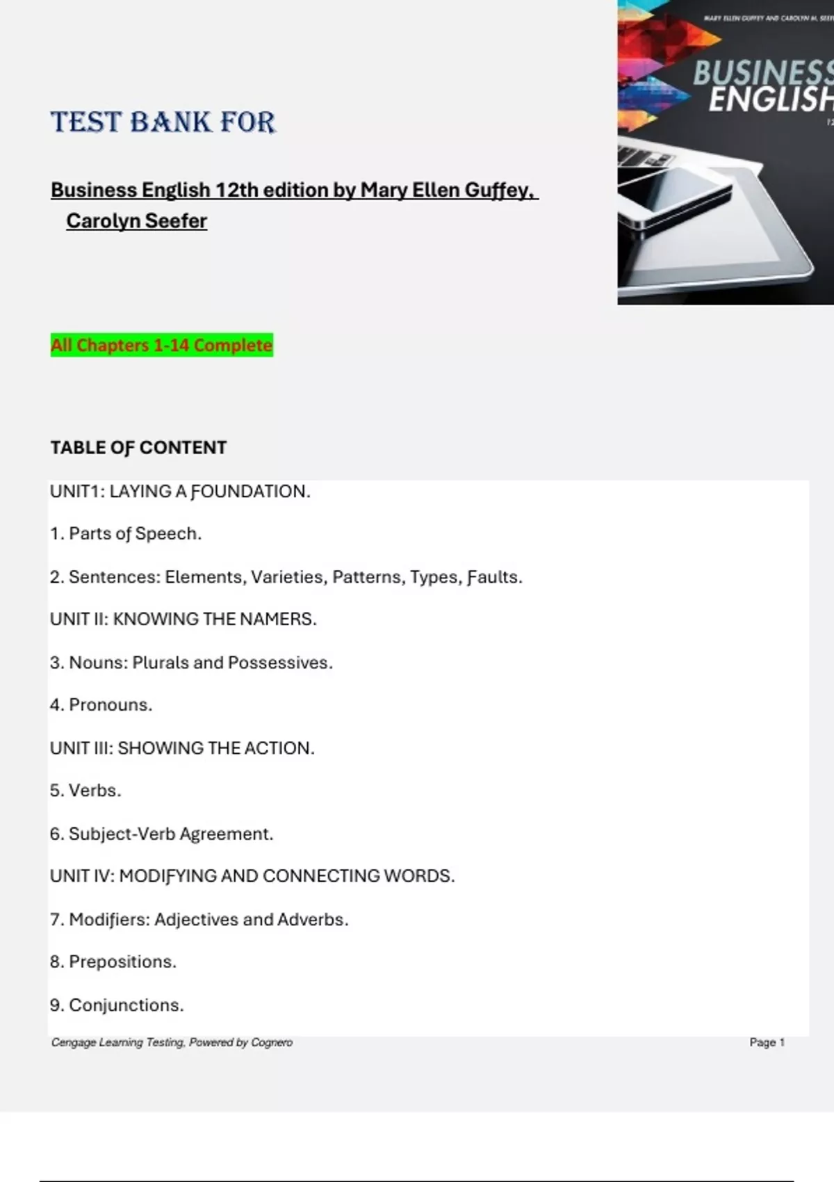 Test Bank For Business English 12th edition by Mary Ellen Guffey, Carolyn Seefer All Chapters 1-14 Complete