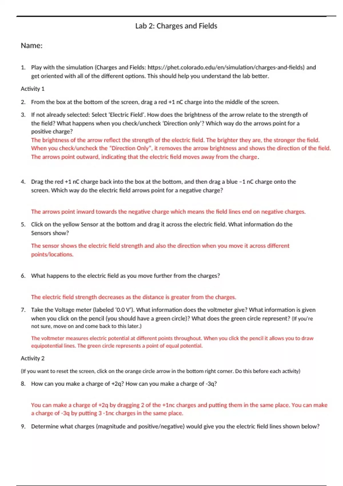 1. Play with the simulation (Charges and Fields: https://phet.colorado.edu/en/simulation/charges-and-fields) and