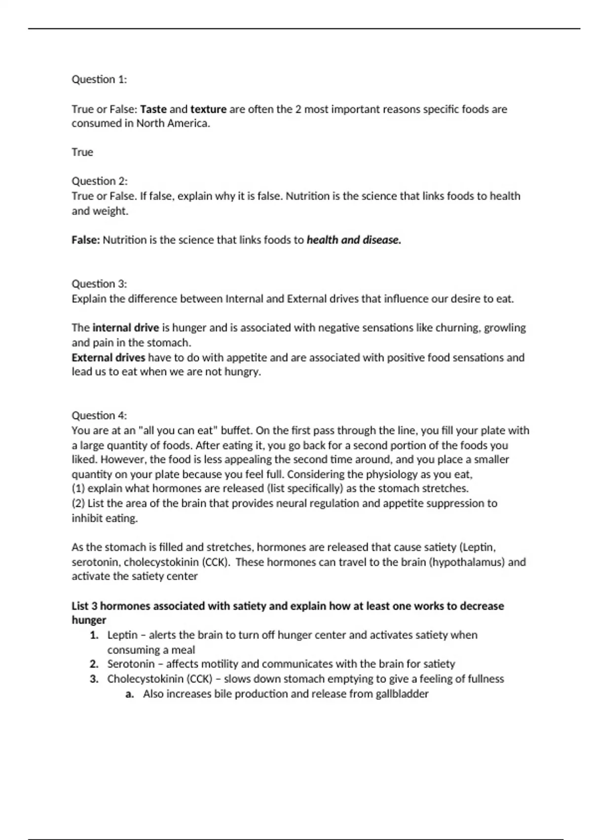 serotonin, cholecystokinin (CCK). These hormones can travel to the brain (hypothalamus) and