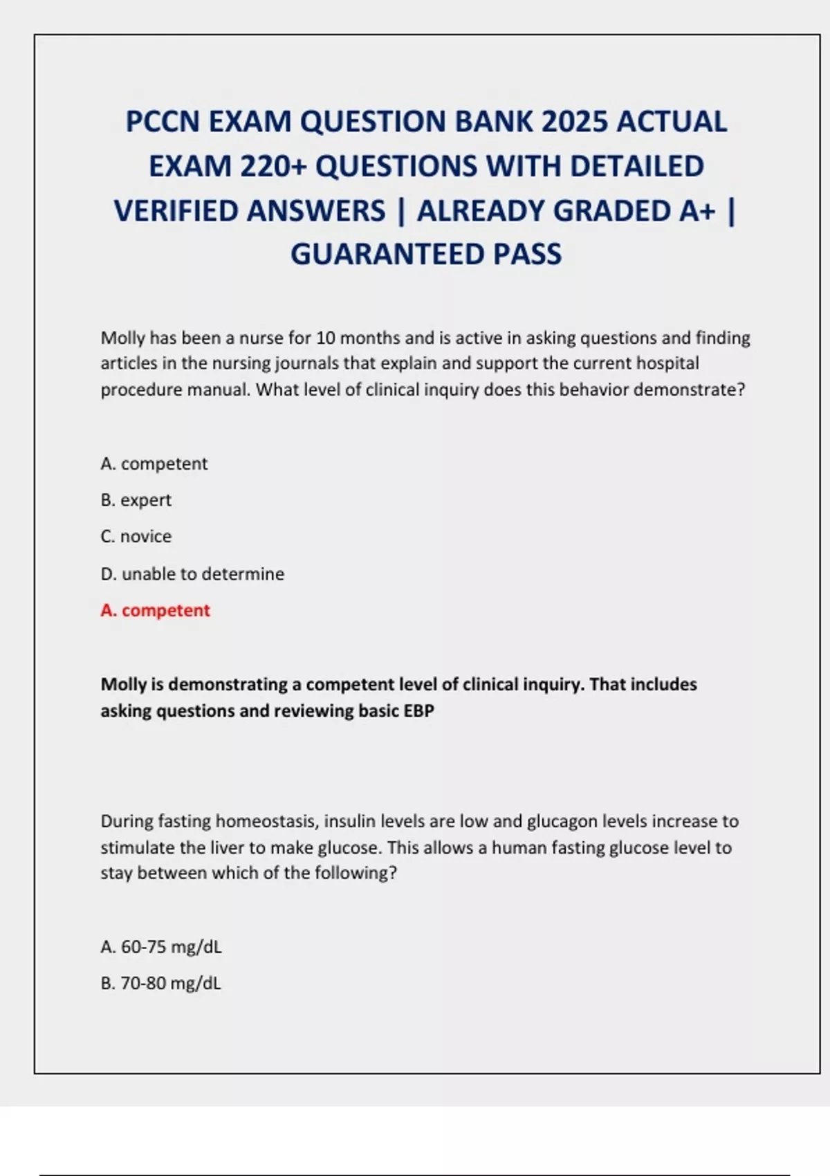 PCCN EXAM QUESTION BANK 2025 ACTUAL EXAM 220+ QUESTIONS WITH DETAILED VERIFIED ANSWERS | ALREADY GRADED A+ | GUARANTEED PASS
