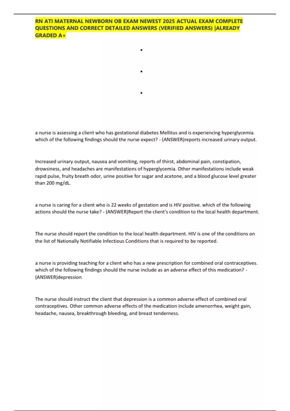, RN ATI MATERNAL NEWBORN OB EXAM NEWEST 2025 ACTUAL EXAM COMPLETE