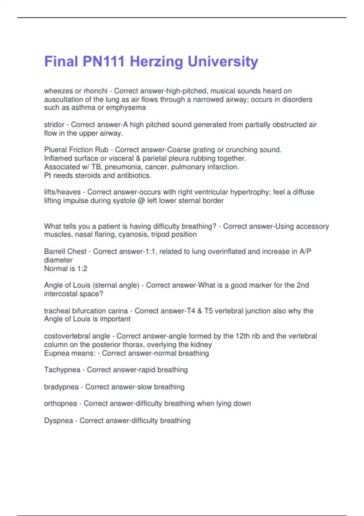 wheezes or rhonchi - Correct answer-high-pitched, musical sounds heard on