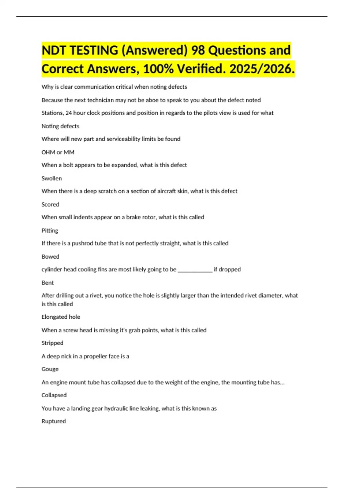 Correct Answers, 100% Verified. 2025/2026.