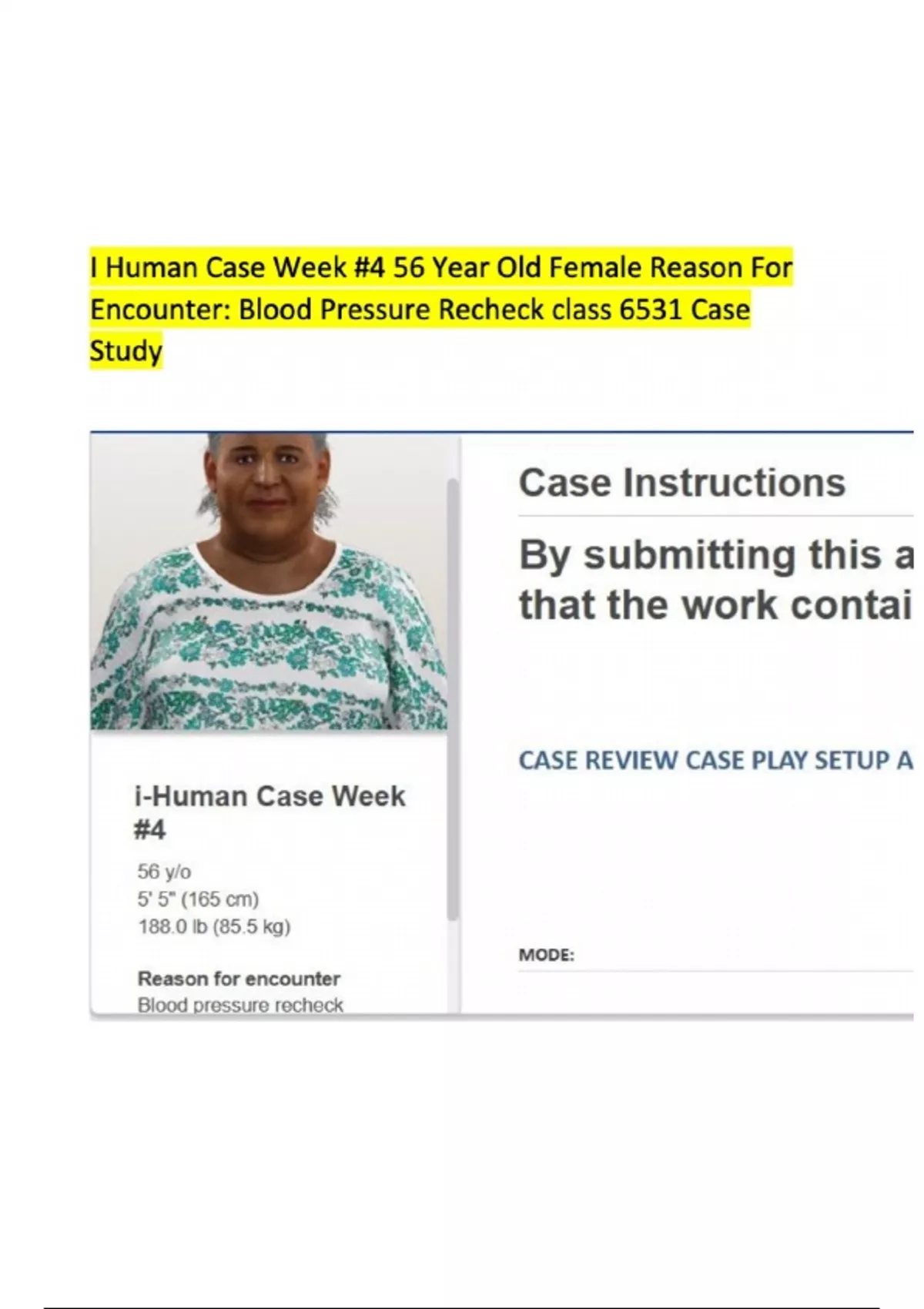 I Human Case Week #7 56 Year Old Female Reason For Encounter- Blood Pressure Recheck Class 6512