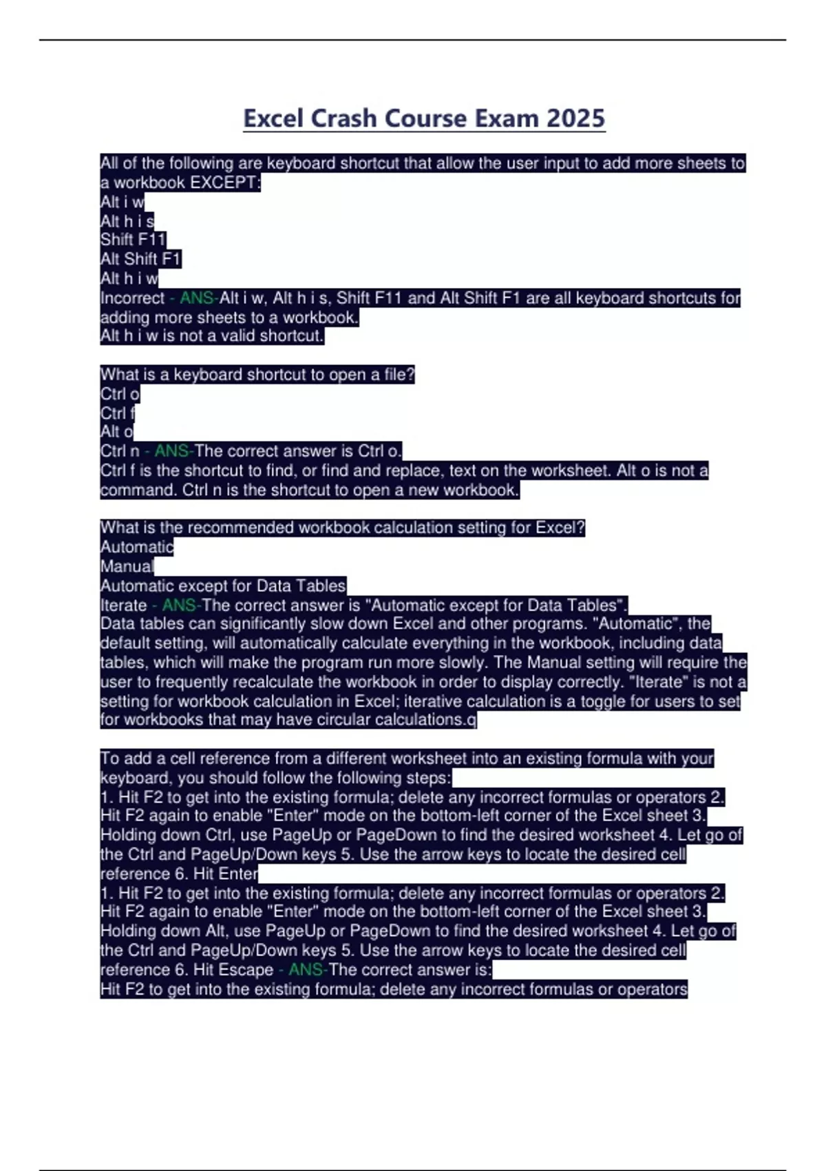 Excel Crash Course Exam 2025