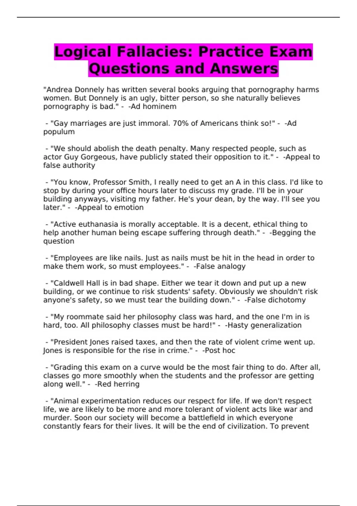 Logical Fallacies: Practice Exam Questions and Answers
