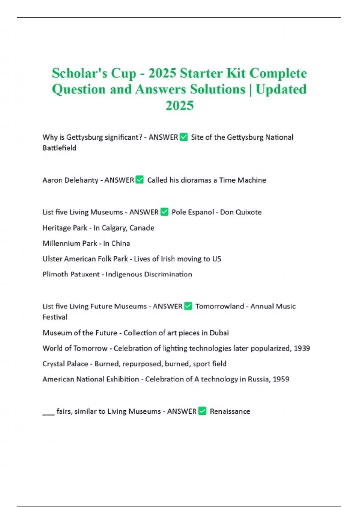 Scholar's Cup - 2025 Starter Kit Complete Question and Answers Solutions | Updated 2025
