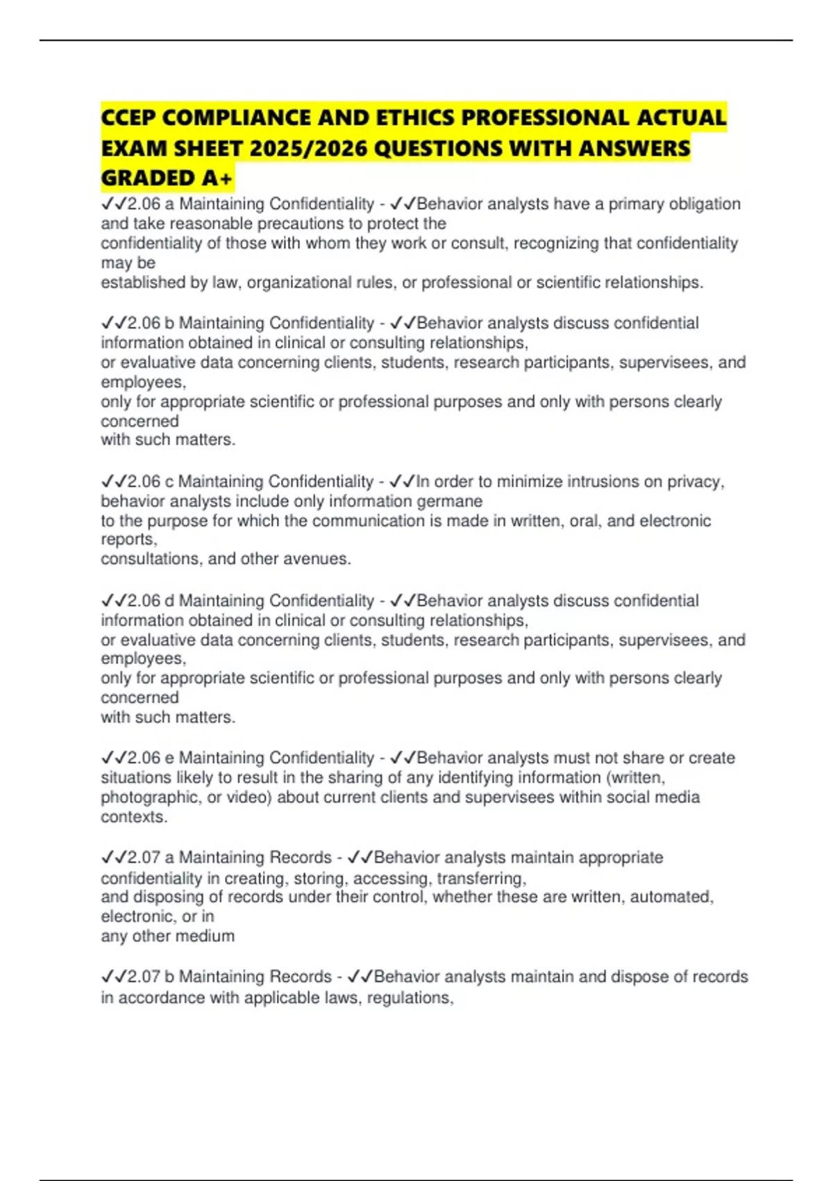 ✔✔2.06 e Maintaining Confidentiality - ✔✔Behavior analysts must not share or create